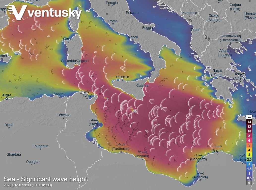 Mezi Sicílií a Maltou byla zaznamenána rekordní vlna o výšce 16 metrů, největší za dobu měření ve Středomoří