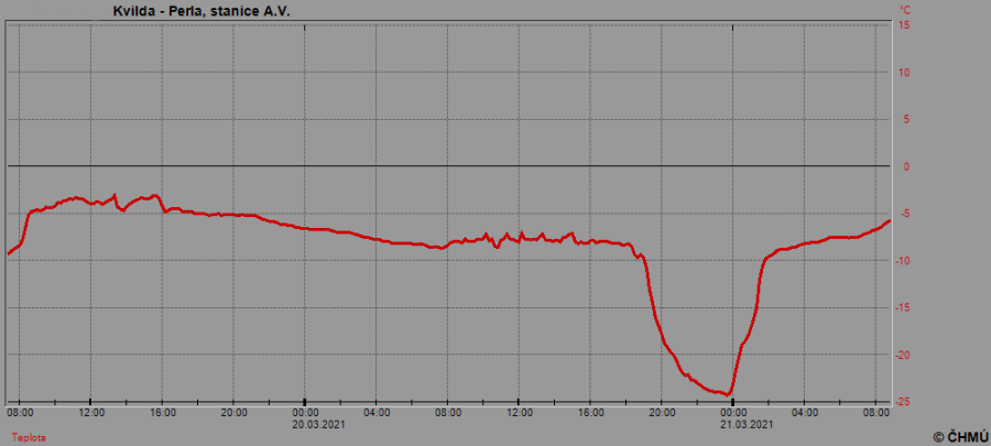 Teploty v mrazových kotlinách klesly i pod -20 °C, překonaly rekordy
