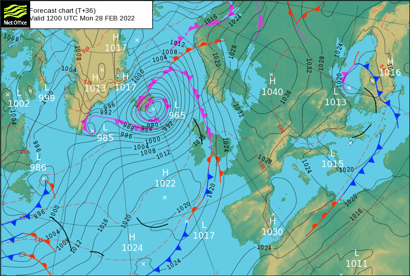 Synoptická mapa v pondělí - počasí ve střední Evropě bude ovlivňovat mohutná tlaková výše nad Pobaltím
