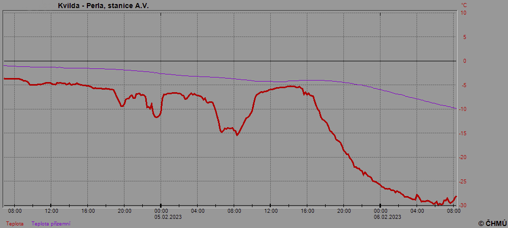 Na Šumavě teploty klesly blízko k -30 °C, zatím nejníže v této zimě