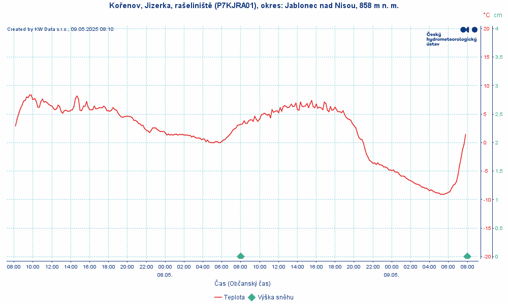 V mrazových kotlinách na horách bylo až -9 °C, slabě mrzlo i v nížinách