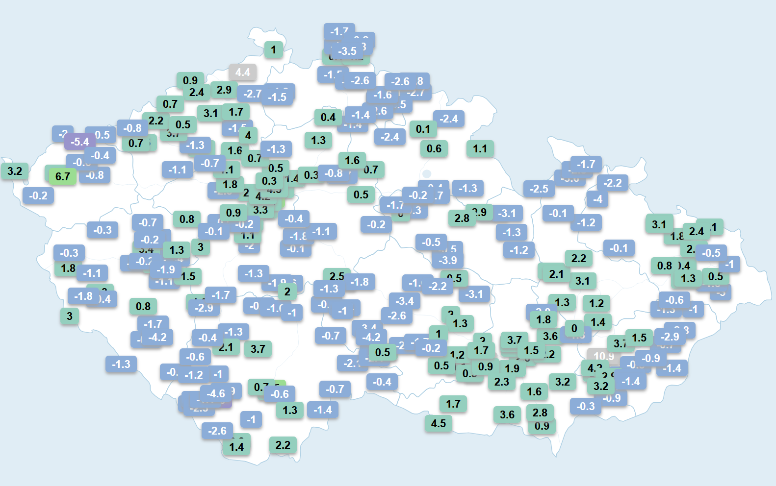 Teploty dnes ráno v 5:30