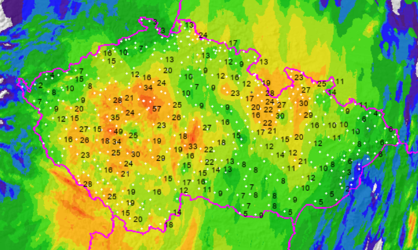 Srážkové úhrny od včerejších 8:00 do dnešních 8:00