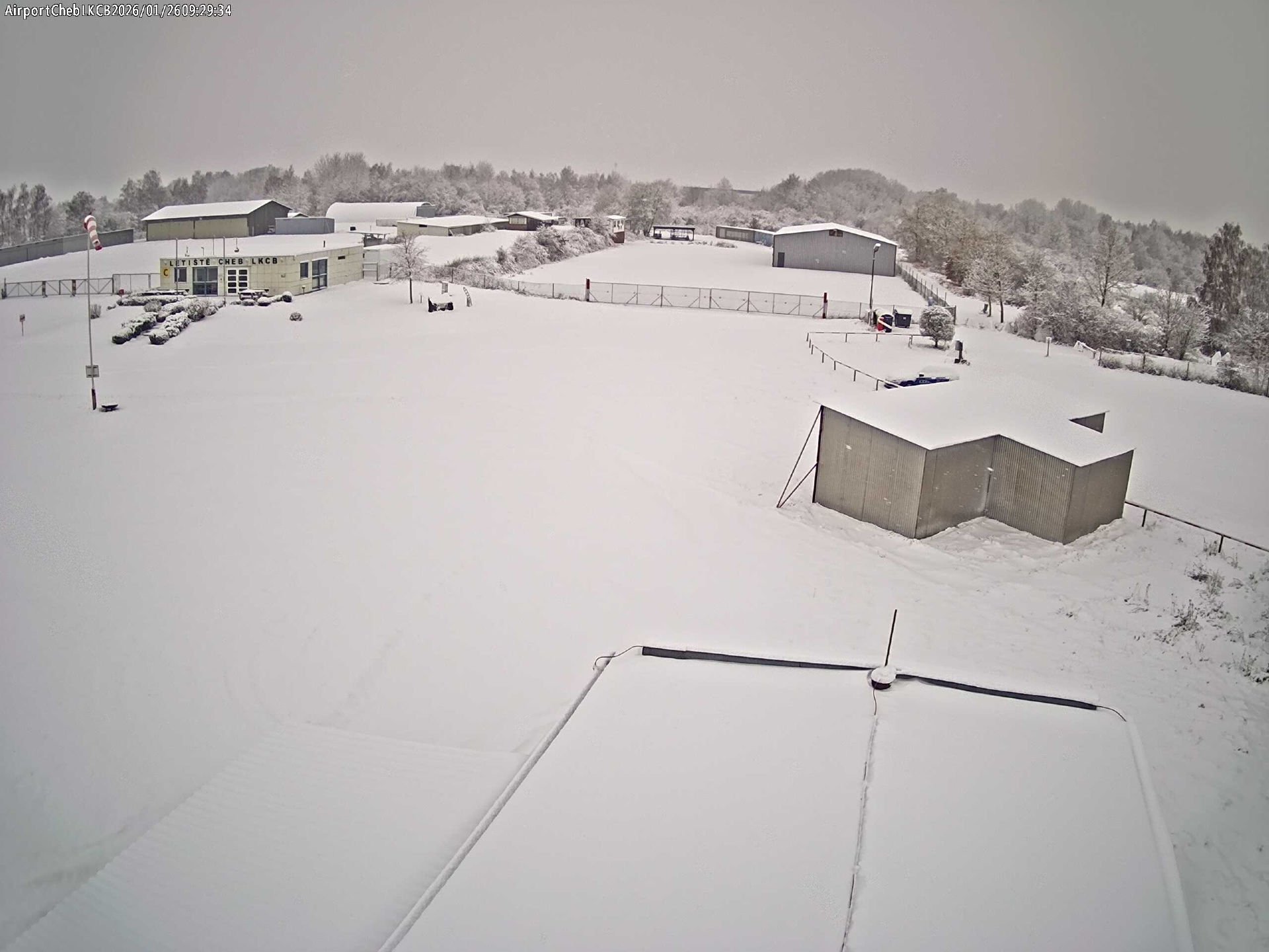 Sněhová pokrývka na letišti v Chebu - napadlo zde 10 cm