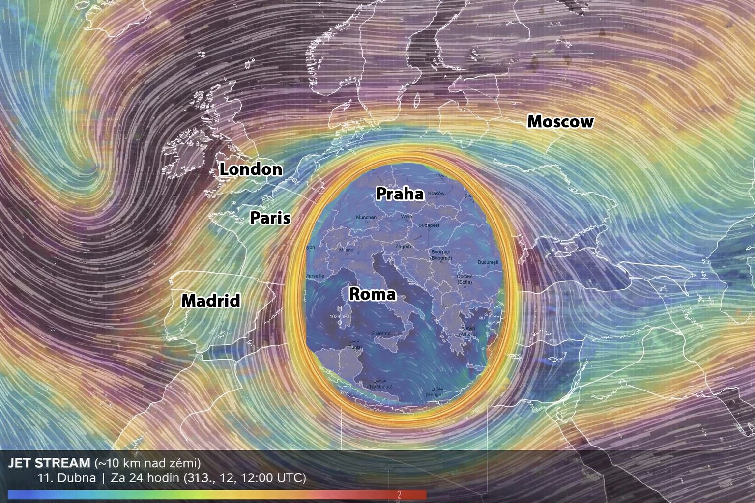Očekávané tryskové proudění nad Evropu 11. dubna - bude mít unikátní tvar uzavřeného oválu
