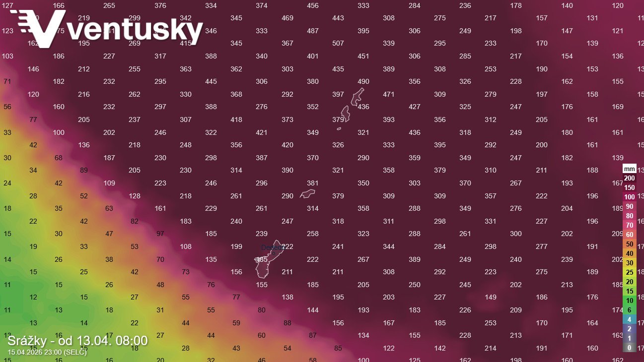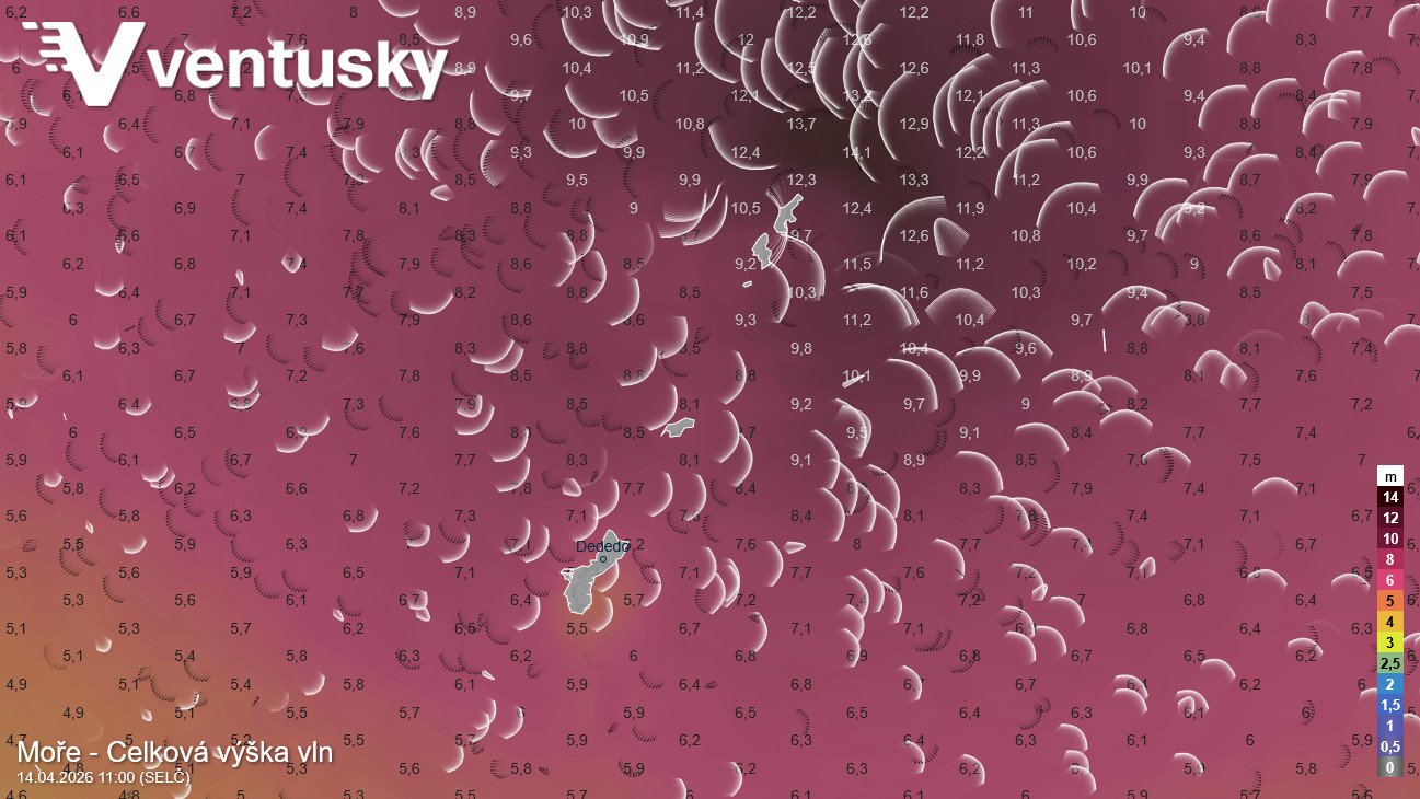 Modelová celková výška vln v úterý při přechodu tajfunu přes severní Mariánské ostrovy