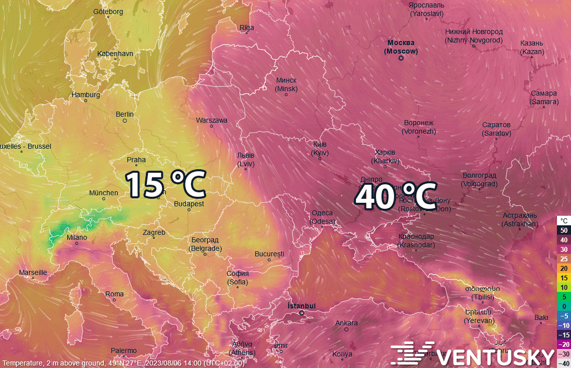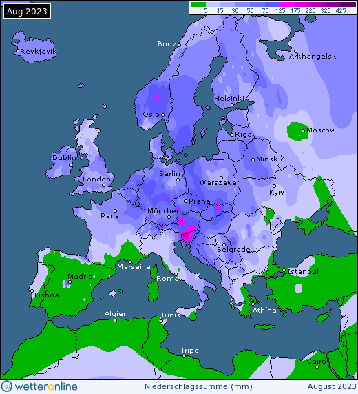 Srážkové úhrny v Evropě od začátku letošního srpna