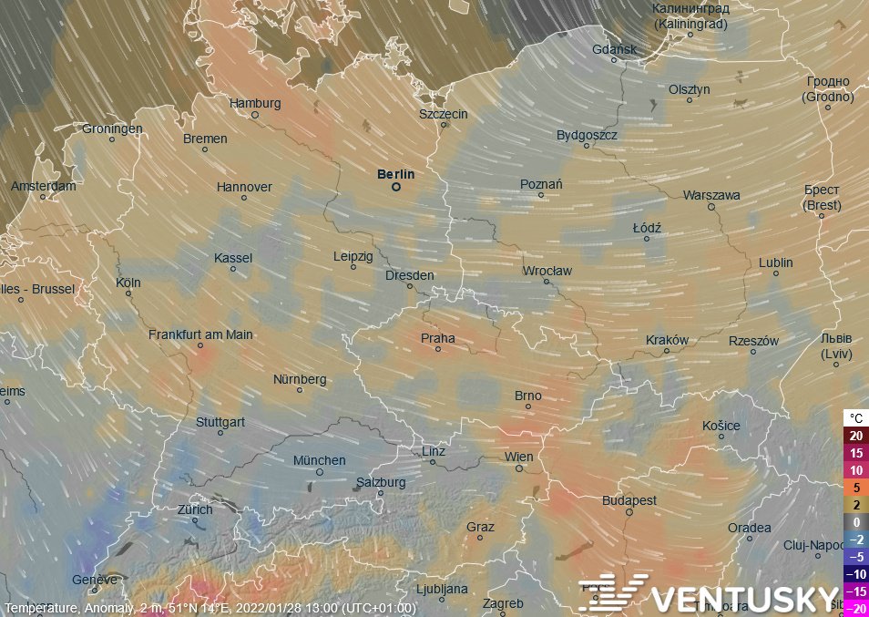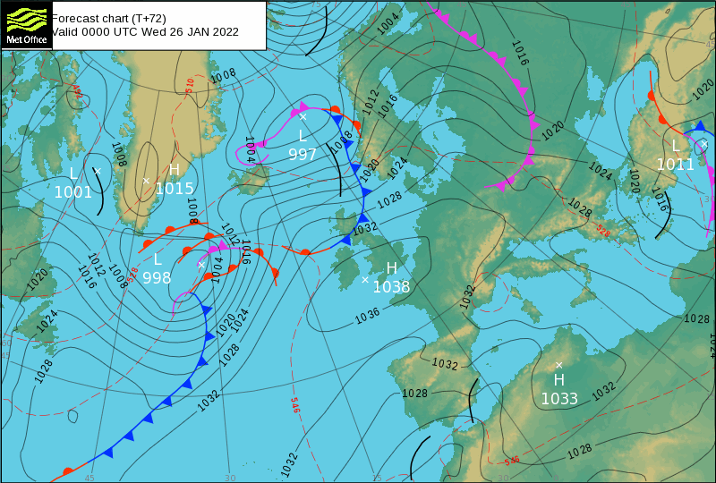 Synoptická situace v noci z úterý na středu - počasí ve střední Evropě bude ovlivňovat tlaková výše nad Britskými ostrovy