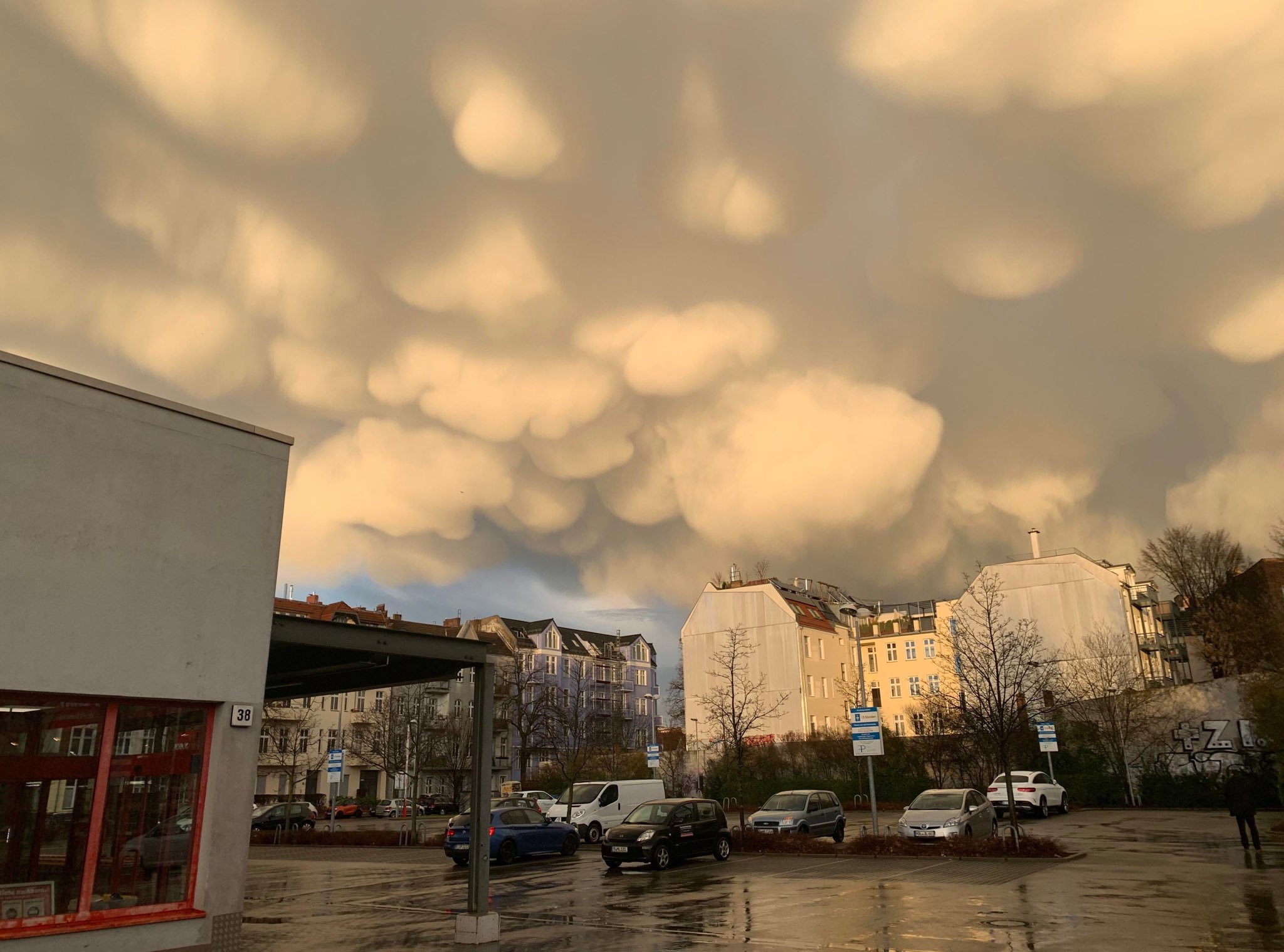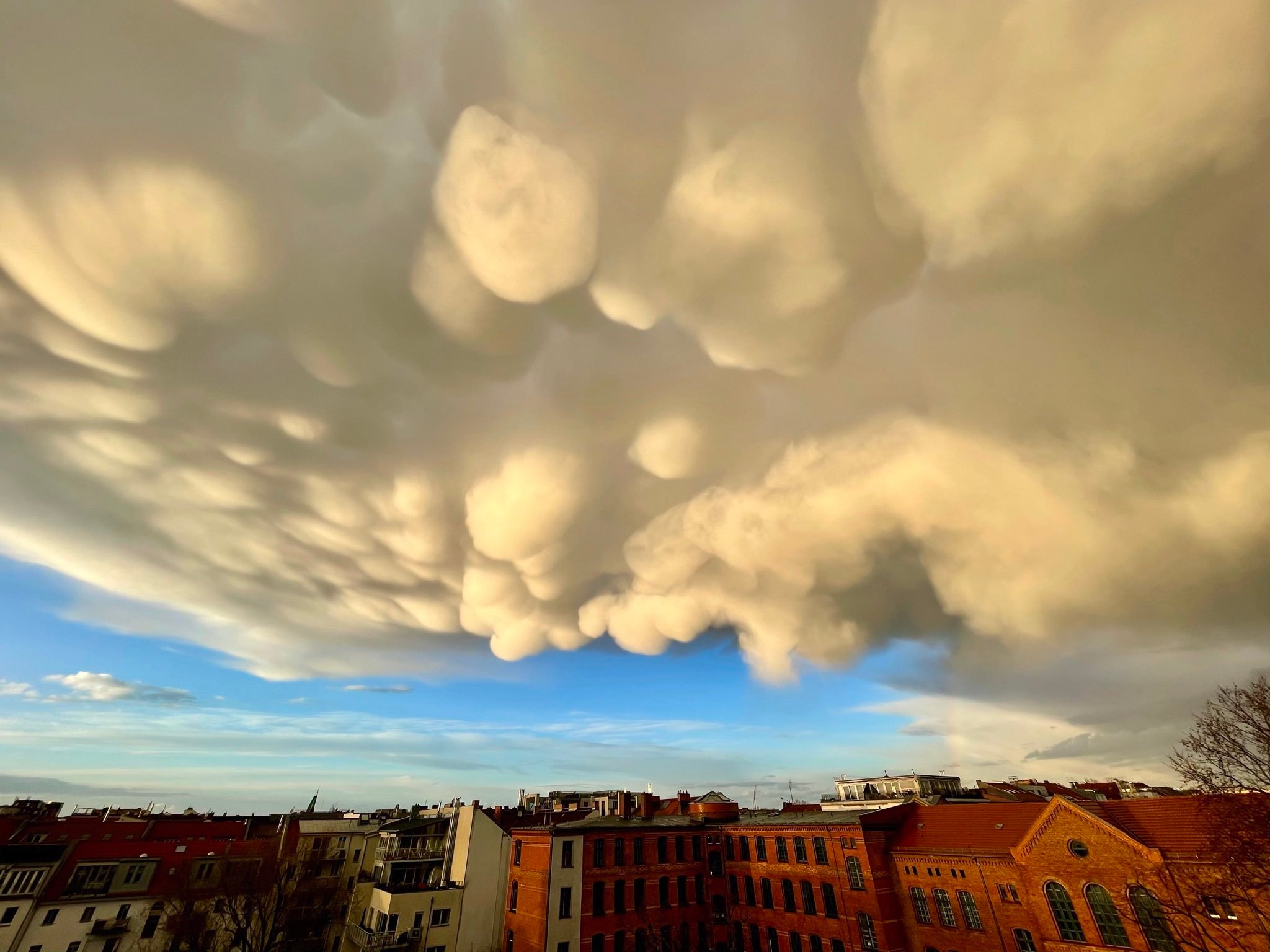 Fascinující oblaka nad Berlínem, z nebe visela mohutná oblaka mammatus