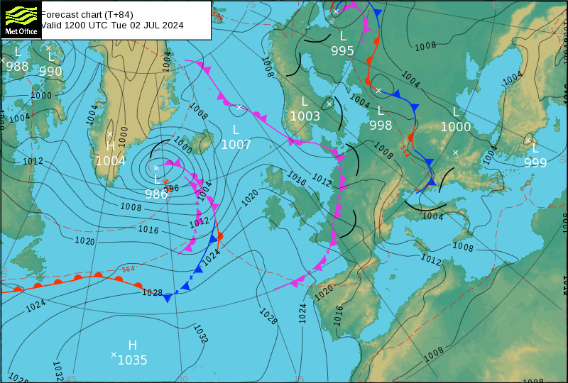 Synoptická situace v úterý - proudit k nám bude chladnější a vlhčí vzduch od severozápadu