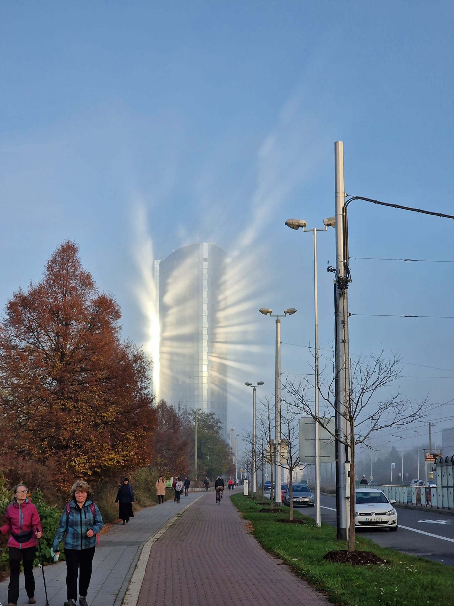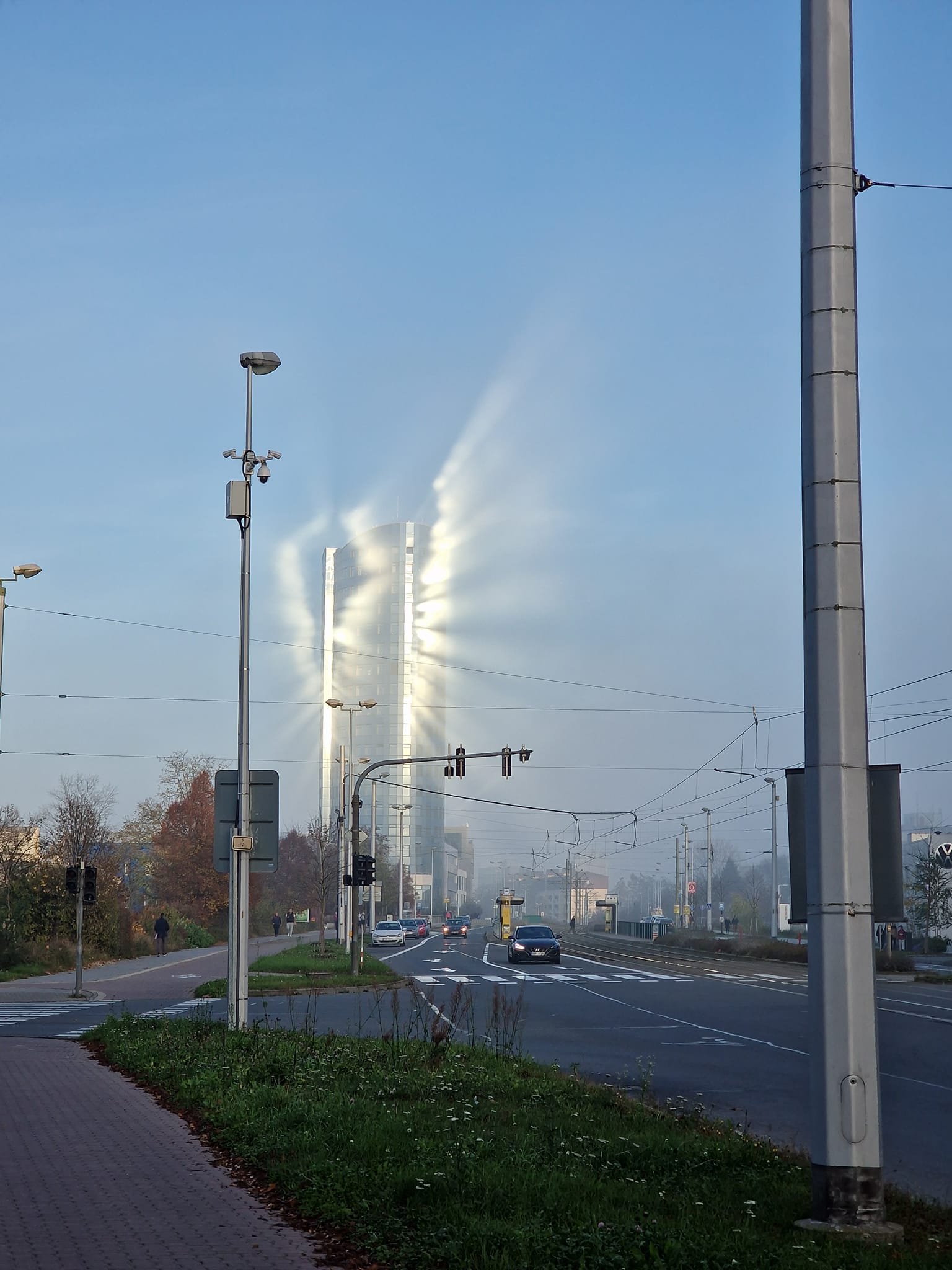 V Olomouci se při mlze vyskytl nádherný Tyndallův jev