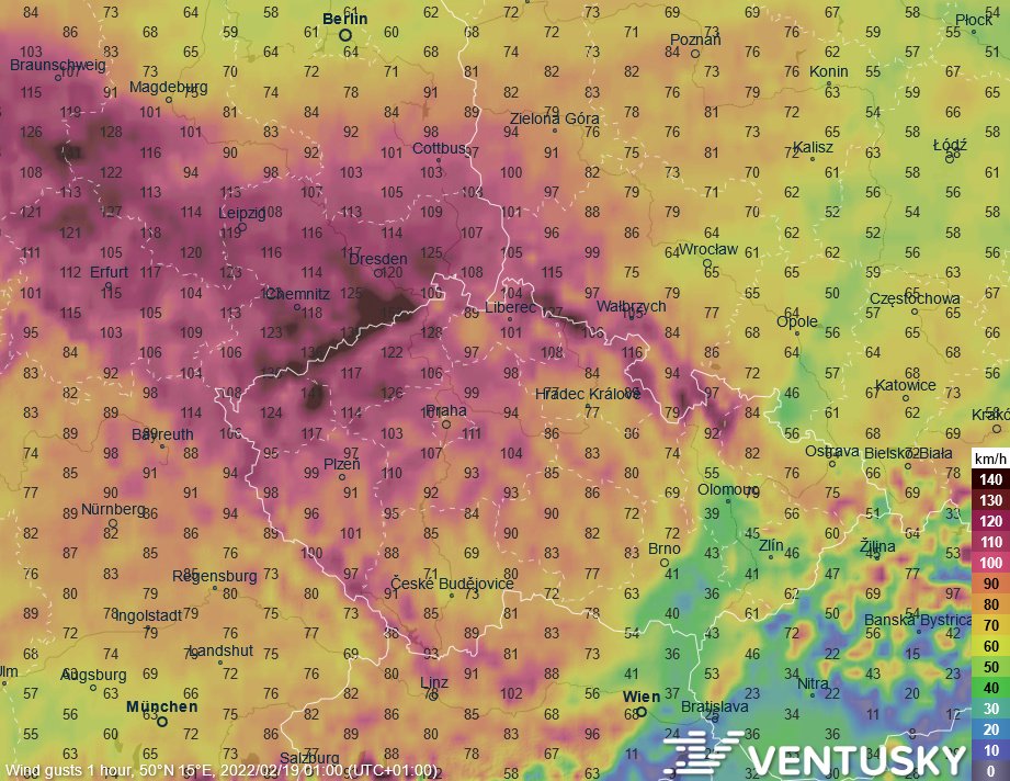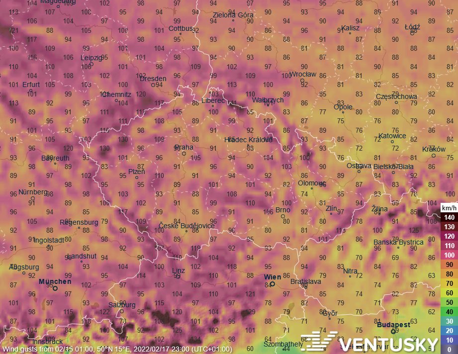 Maximální nárazy větru na našem území do čtvrtečního večera