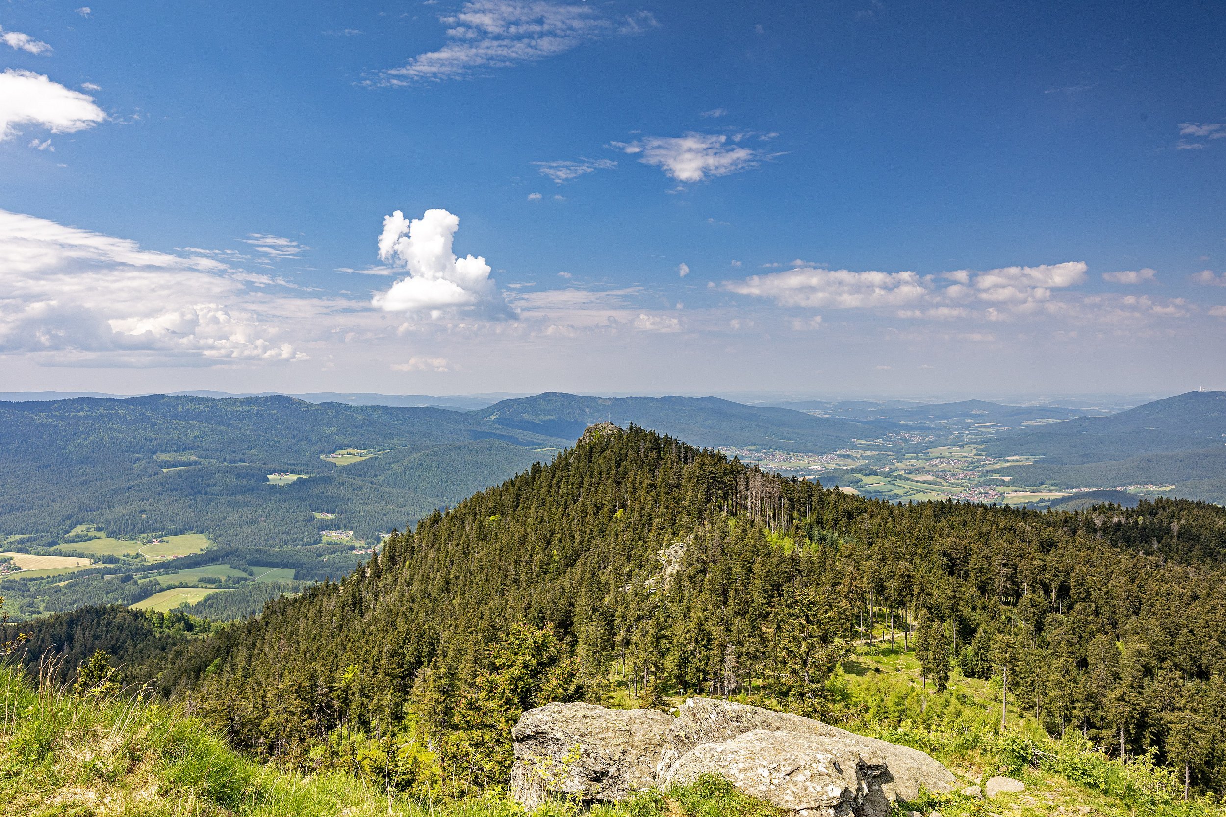 Ostrý je jedním z nejhezčích vrcholů Šumavy, nechybí zde ani meteorologická stanice