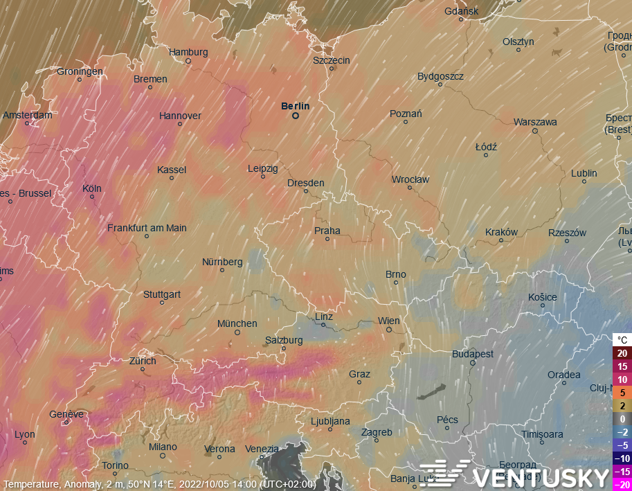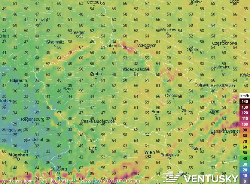 Maximální nárazy větru za pondělí - musíme počítat s čerstvým větrem, který bude snižovat pocitovou teplotu