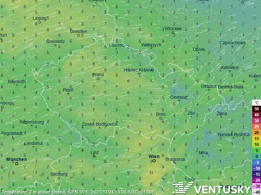Očekávaná sněhová pokrývka na Boží hod večer - model GFS naznačuje, že se může vytvořit na většině území, jiné modely ovšem očekávají sněhu o poznání méně