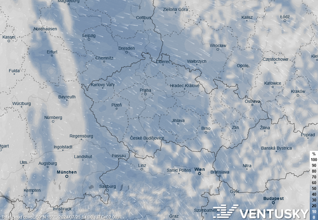 Synoptická situace v noci z úterý na středu - přes naše území přejde další studená fronta