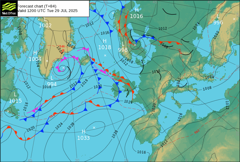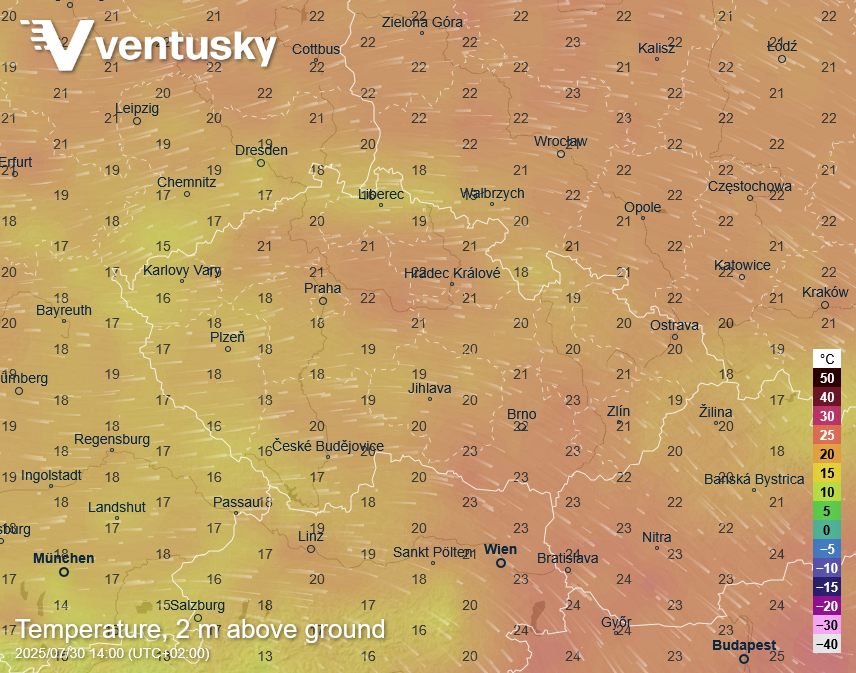 Synoptická situace v úterý - proudit k nám bude chladnější vzduch od severozápadu