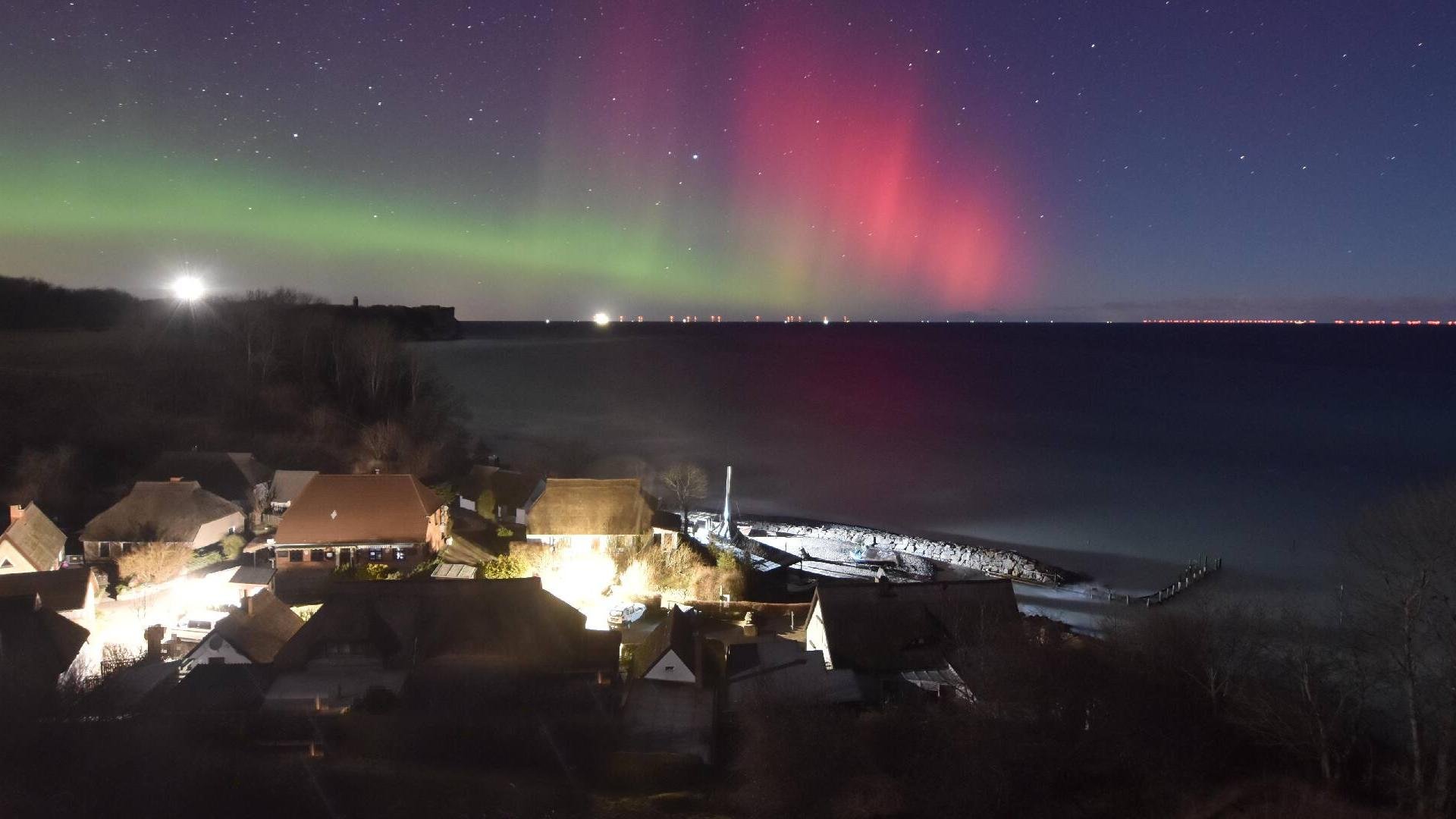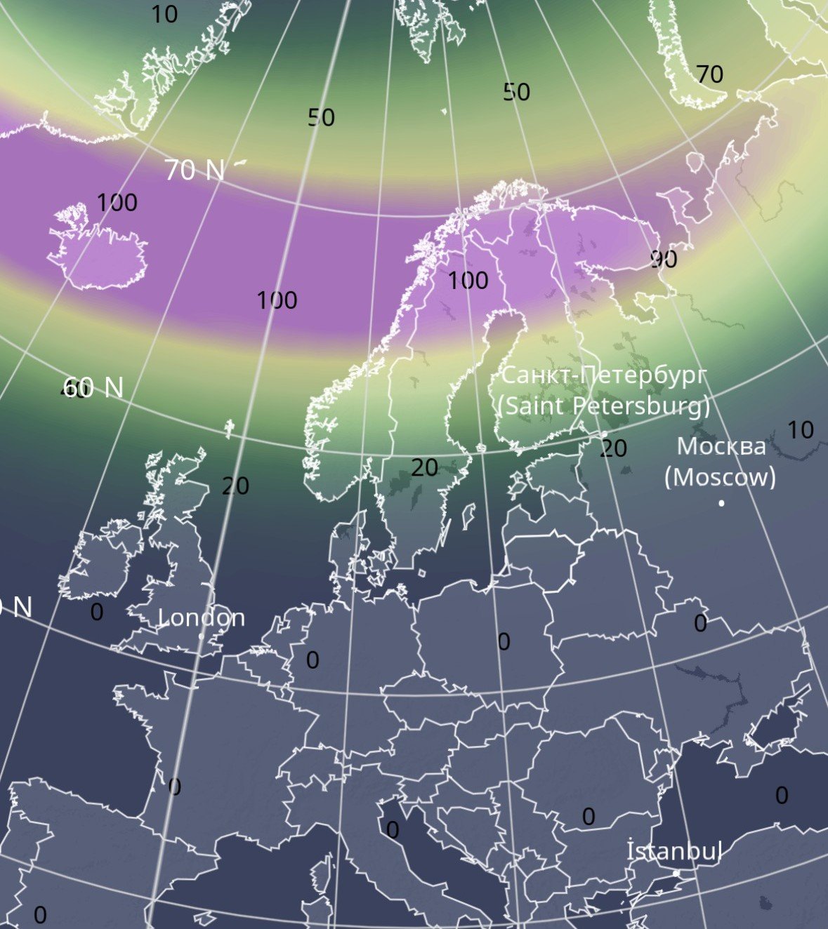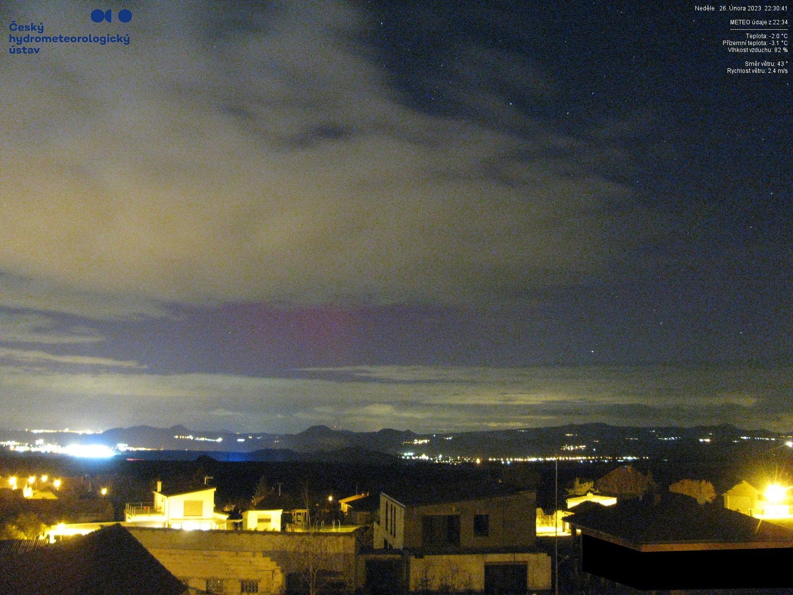 Záběr z webkamery Smolnice (okres Louny) ve 22:30 - na části snímku je lehce vidět narůžovělá obloha (tedy polární záře)