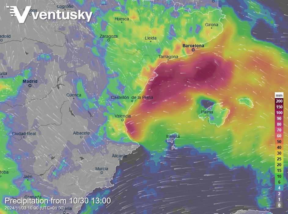 Očekávané srážky na severovýchodě Španělska do konce týdne - v zasažených oblastech už spadne jen do 50 mm srážek, více bude pršet nad mořem
