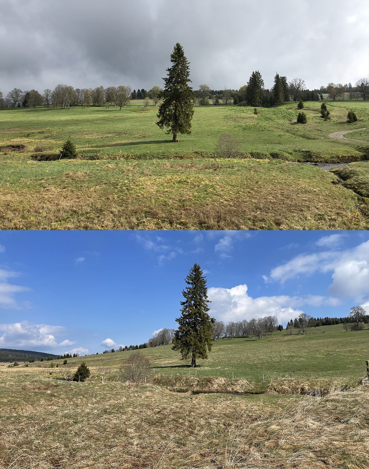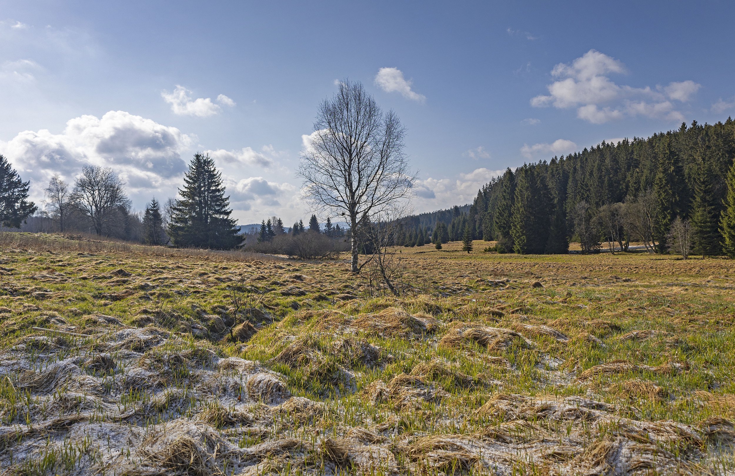 Kepelské Zhůří - ve stínu se dnes ráno ještě nacházel poprašek sněhu po noční sněhové přeháňce