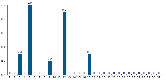 Denní úhrny srážek v Praze Klementinu v květnu 1922