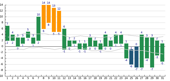 Teploty v Praze Libuši v prosinci 2025 - šedě jsou znázorněny dlouhodobé průměry
