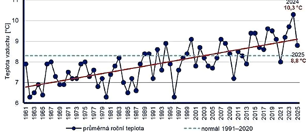Rok 2025 byl celkově teplotně normální, srážek bylo méně