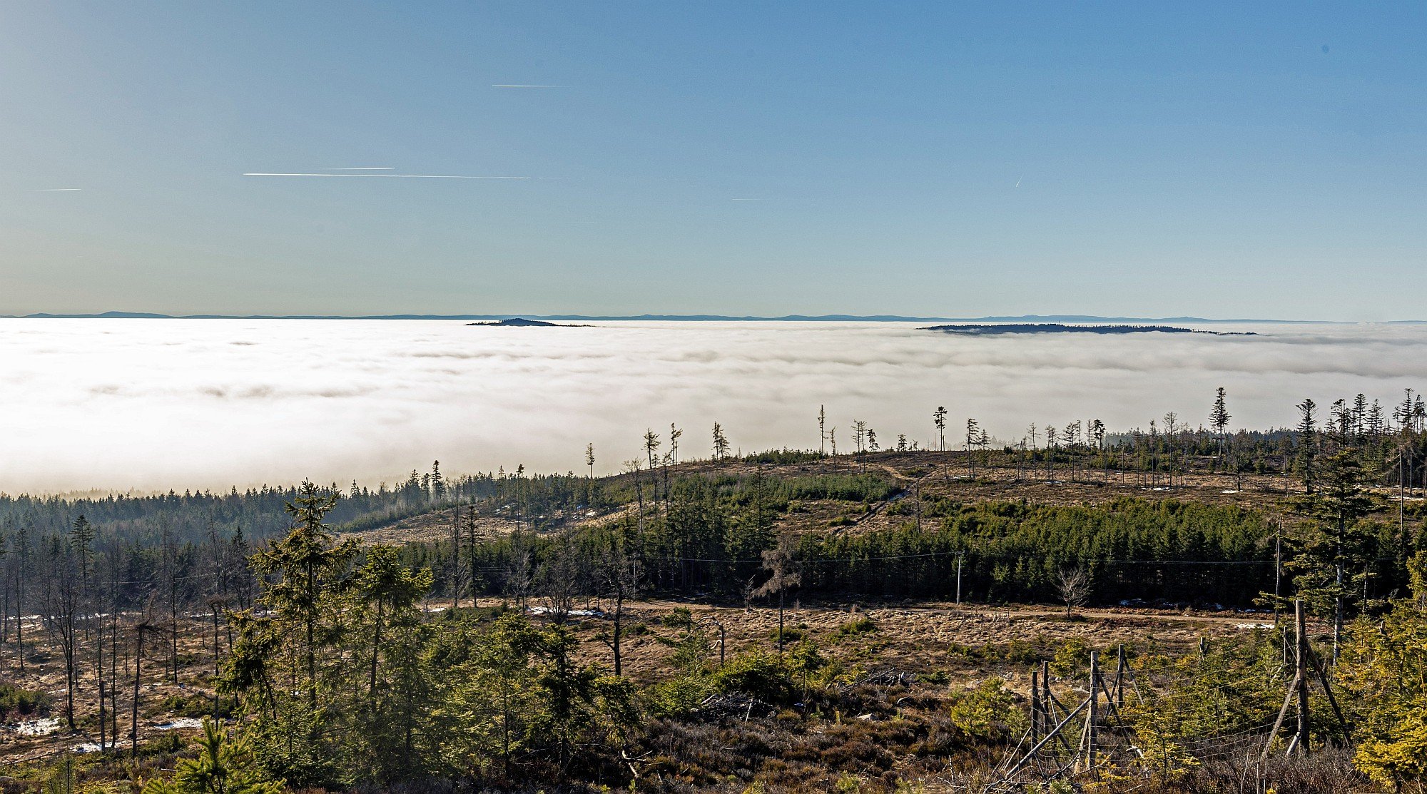 Sluncem zalité vrcholy Brd nad nízkou oblačností nabídly nádherné zrcadlení