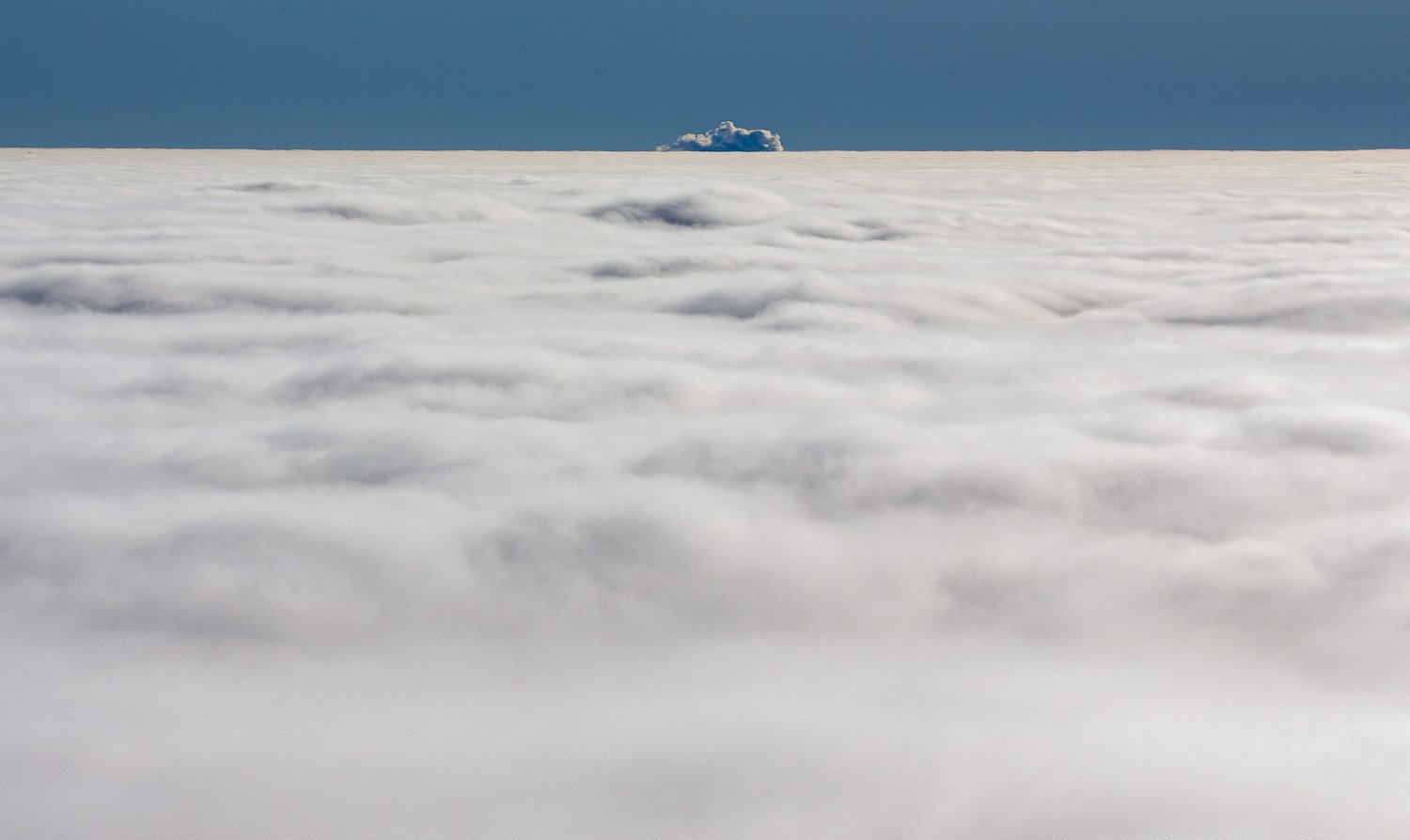 Sluncem zalité vrcholy Brd nad nízkou oblačností nabídly nádherné zrcadlení