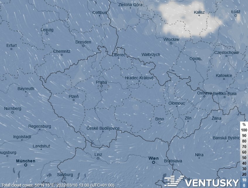 Množství oblačnosti ve čtvrtek - na celém území převládne jasno