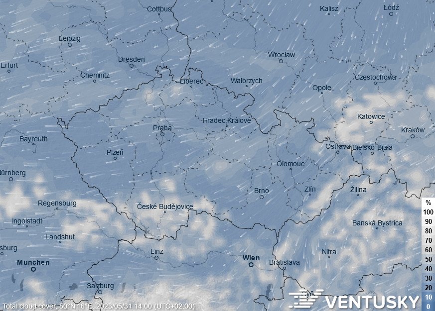 Očekávané teploty ve čtvrtek odpoledne - zamíří na letní hodnoty