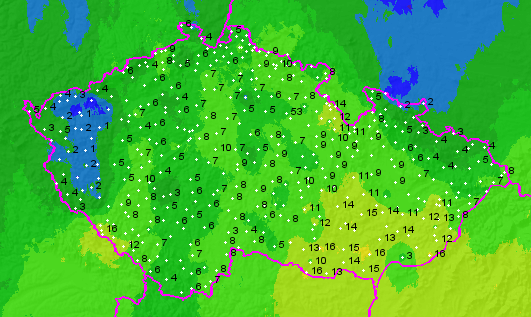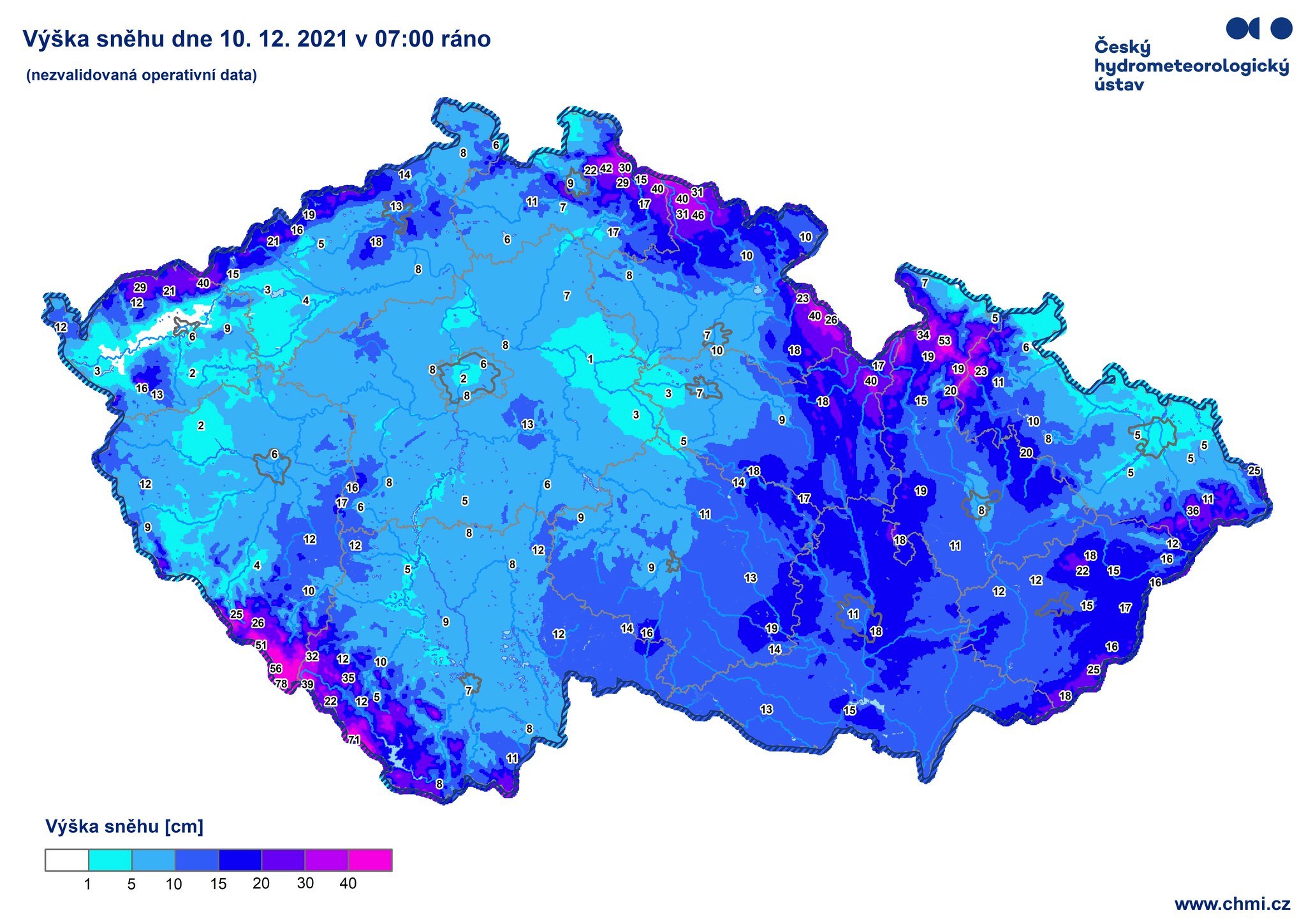 Výška sněhu dnes ráno na stanicích ČHMÚ