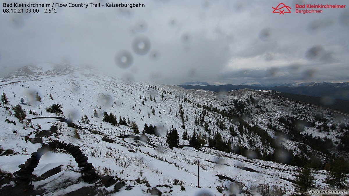 Bad Kleinkirchheim v Rakousku (Korutany) v nadmořské výšce 2030 m dnes dopoledne - jedná se zde o první sněhovou pokrývku po létě