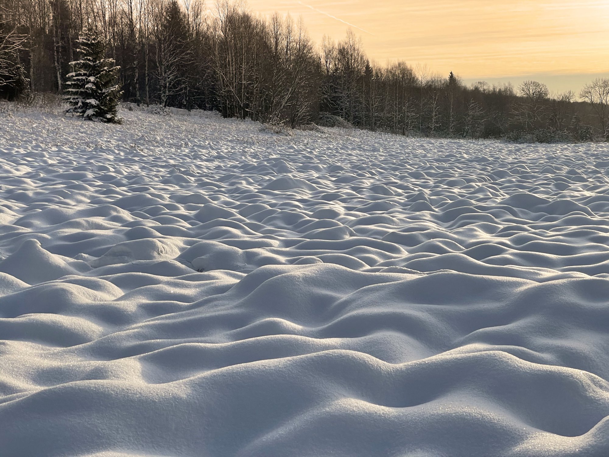 Kepelské Zhůří dnes ráno - sněhové bochánky konečně zdobí šumavské pláně