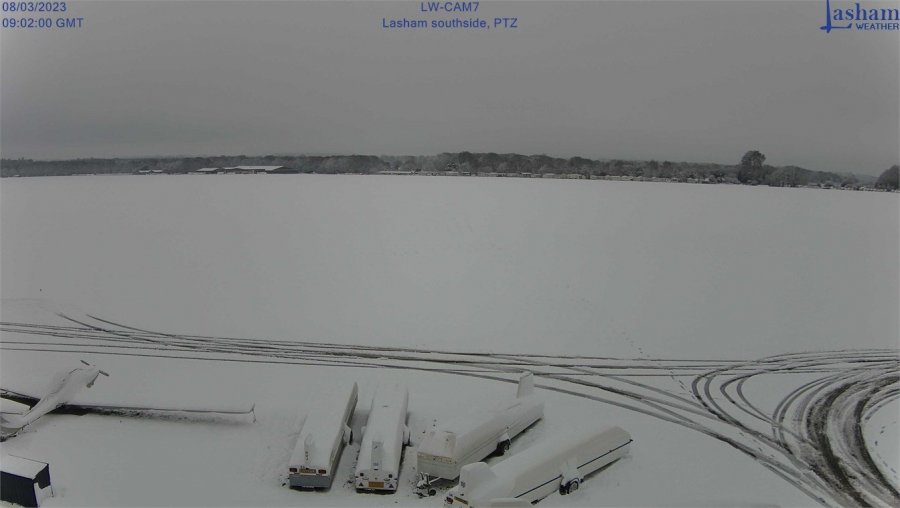 Zasněžené letiště Lasham dnes ráno mezi městy Londýn a Wnchester, zdroj: wlac.co.uk