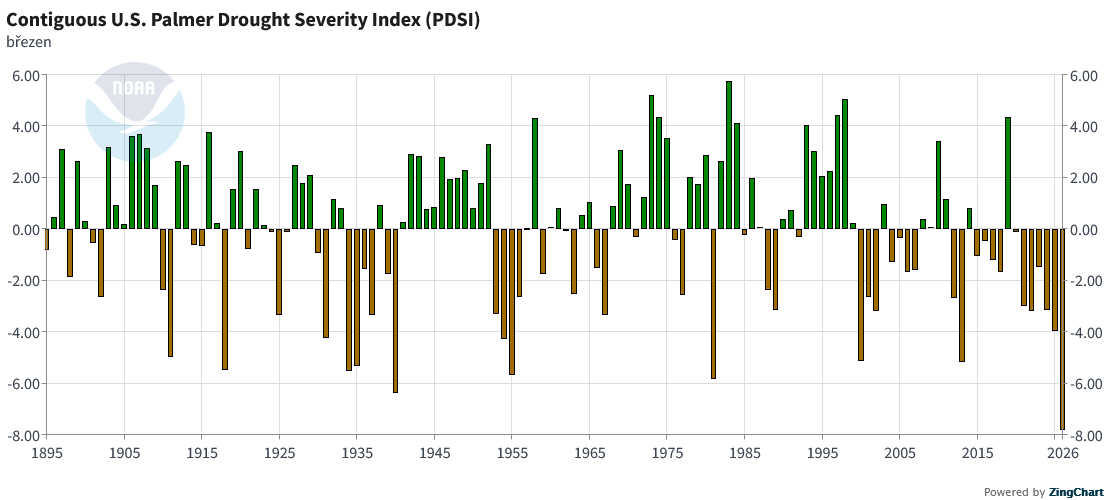Aktuální stav sucha v USA - nejhorší situace panuje na jihovýchodě země