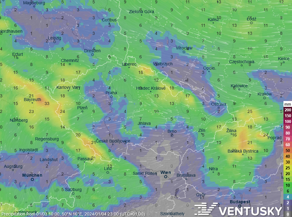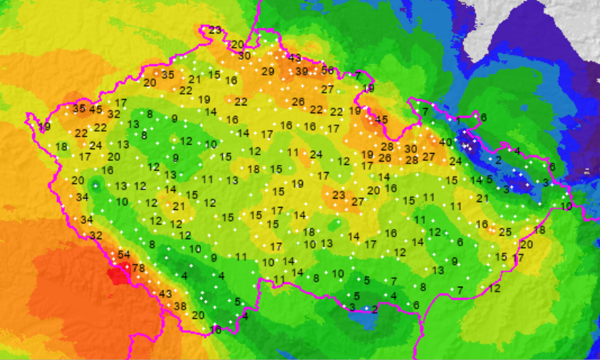 Očekávané srážkové úhrny od dnešního poledne do čtvrtečního večera