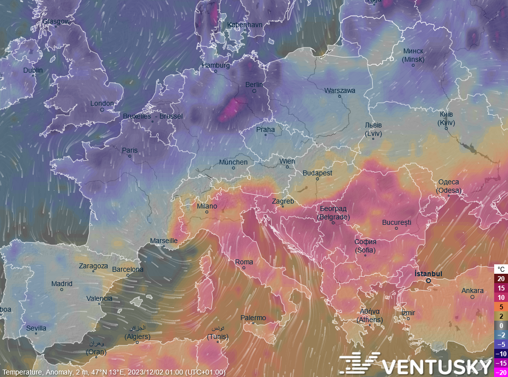 Ostrý teplotní kontrast v Evropě k nám přinesl mimořádné sněžení, v Srbsku naměřili 24 °C a tropickou noc