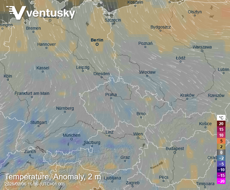 Průměrné teploty a vliv tlakové výše, která v průběhu týdne zeslábne