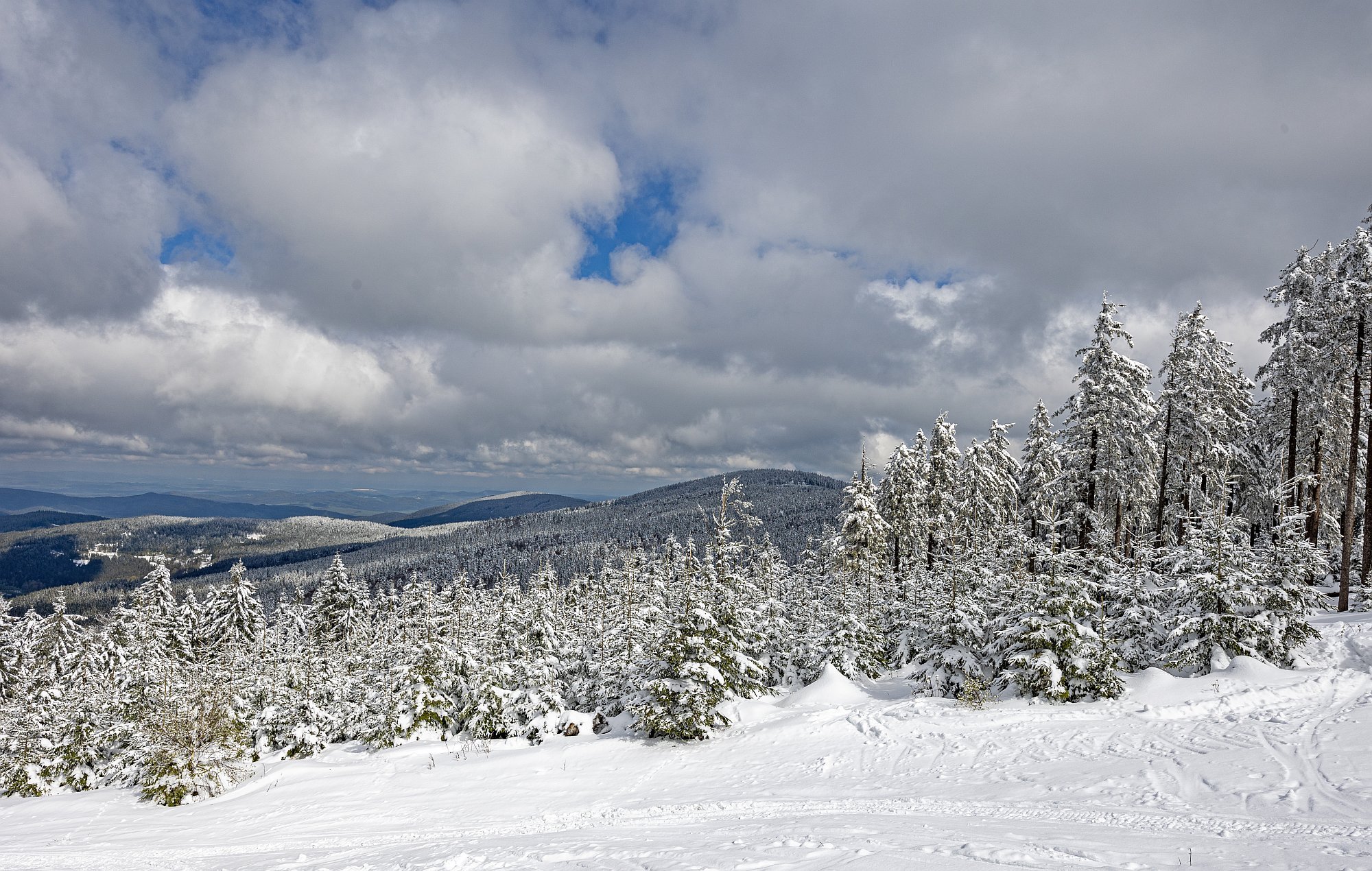 Pohled ze zasněženého Pancíře dnes dopoledne