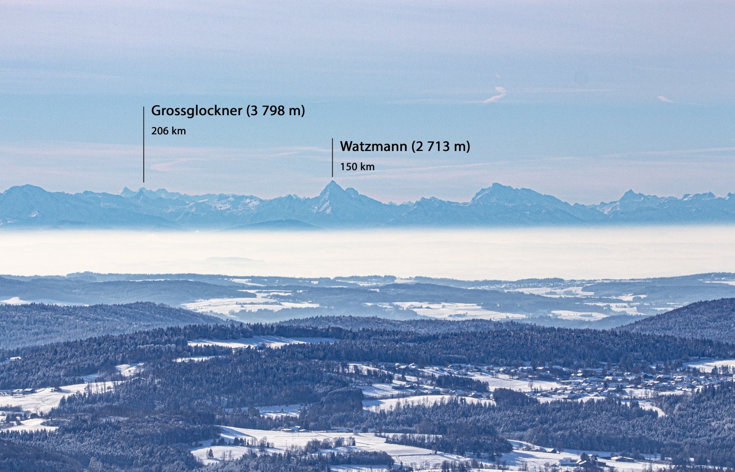 Díky nízké vlhkosti a teplotní inverzi Šumava nabídla nádherné výhledy na Alpy