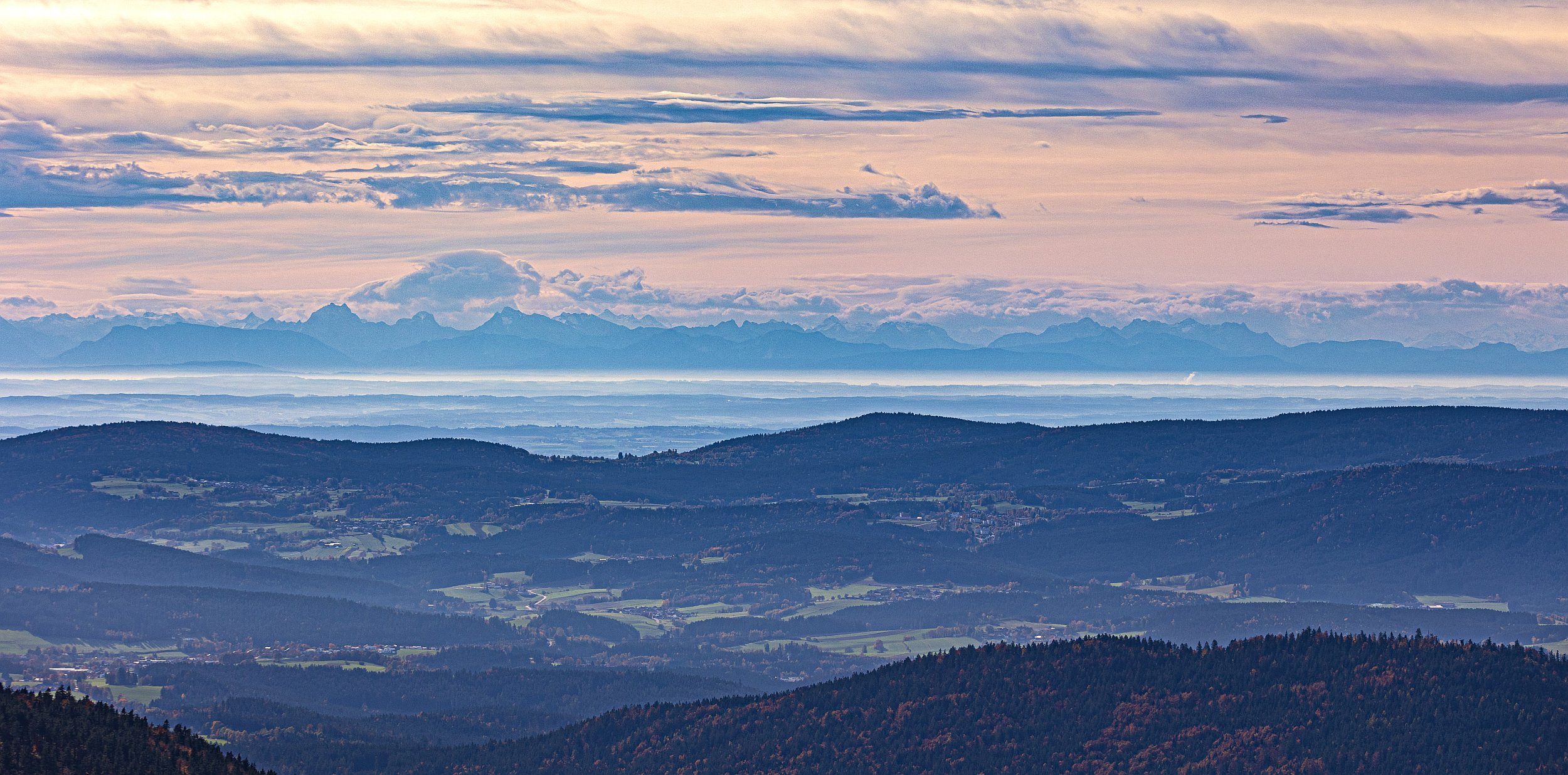 Ze Šumavy byly dobře pozorovatelné Alpy, nastává období skvělých dohledností z hor