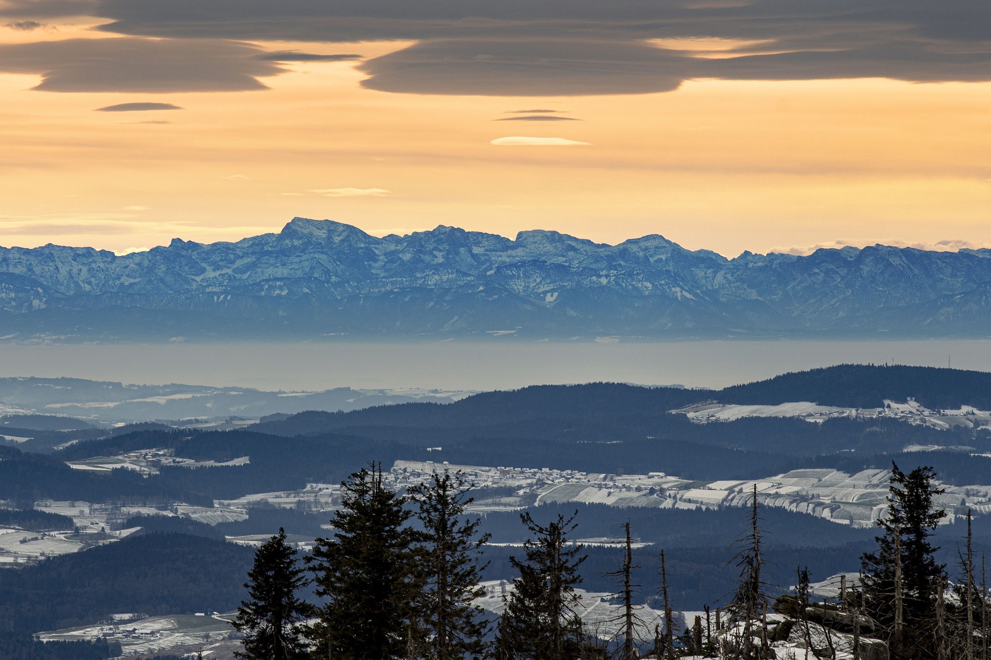 Šumava nabídla nádherné výhledy na Alpy, vidět bylo i 200 km daleko