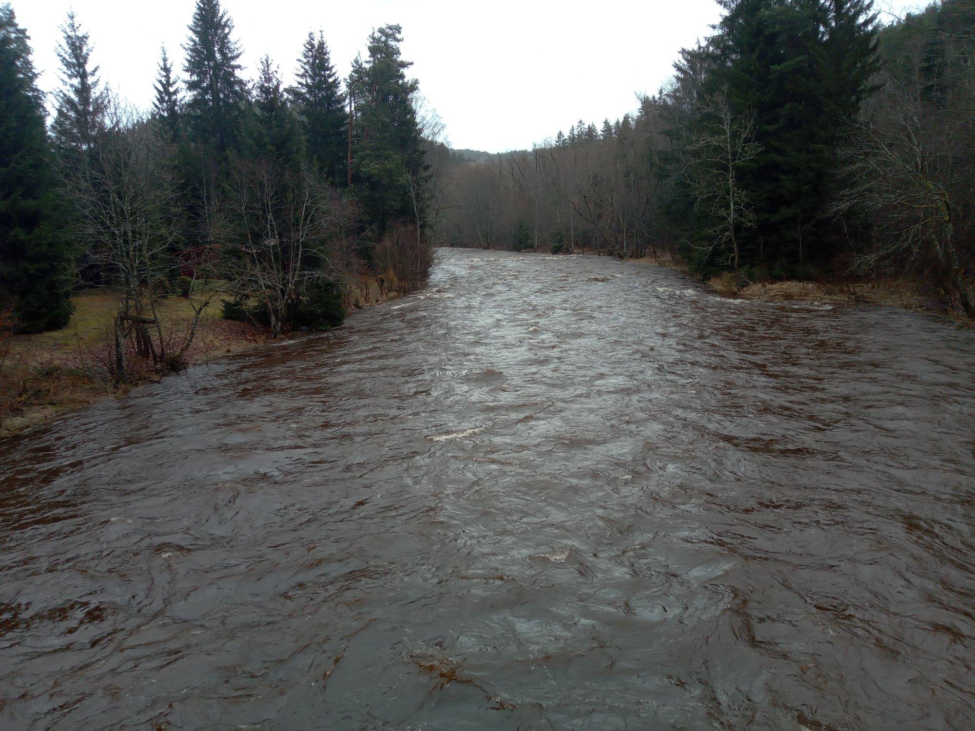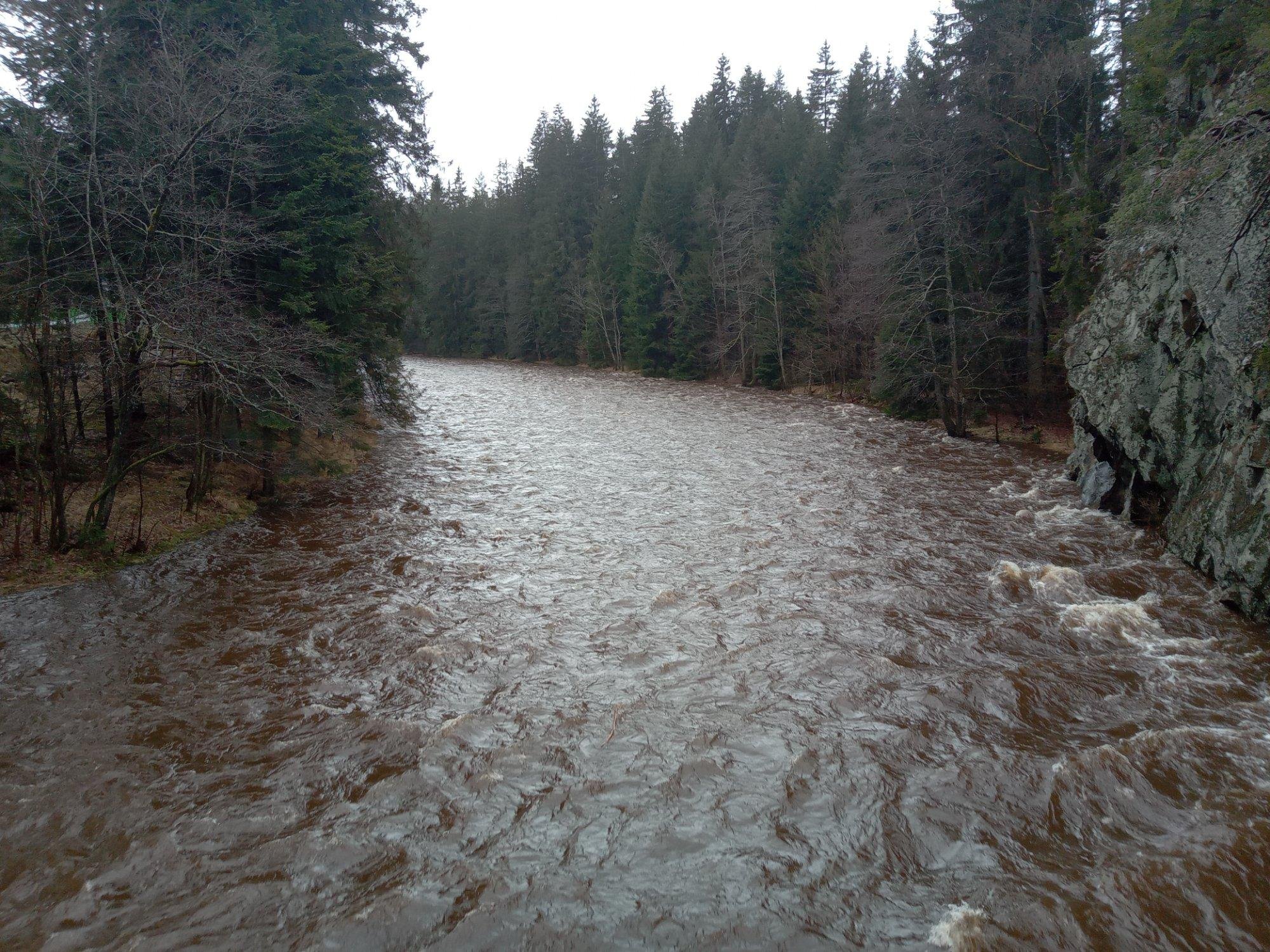 Rozvodněná Otava u Anína nad Sušicí dnes dopoledne (zaslal uživatel swan1)