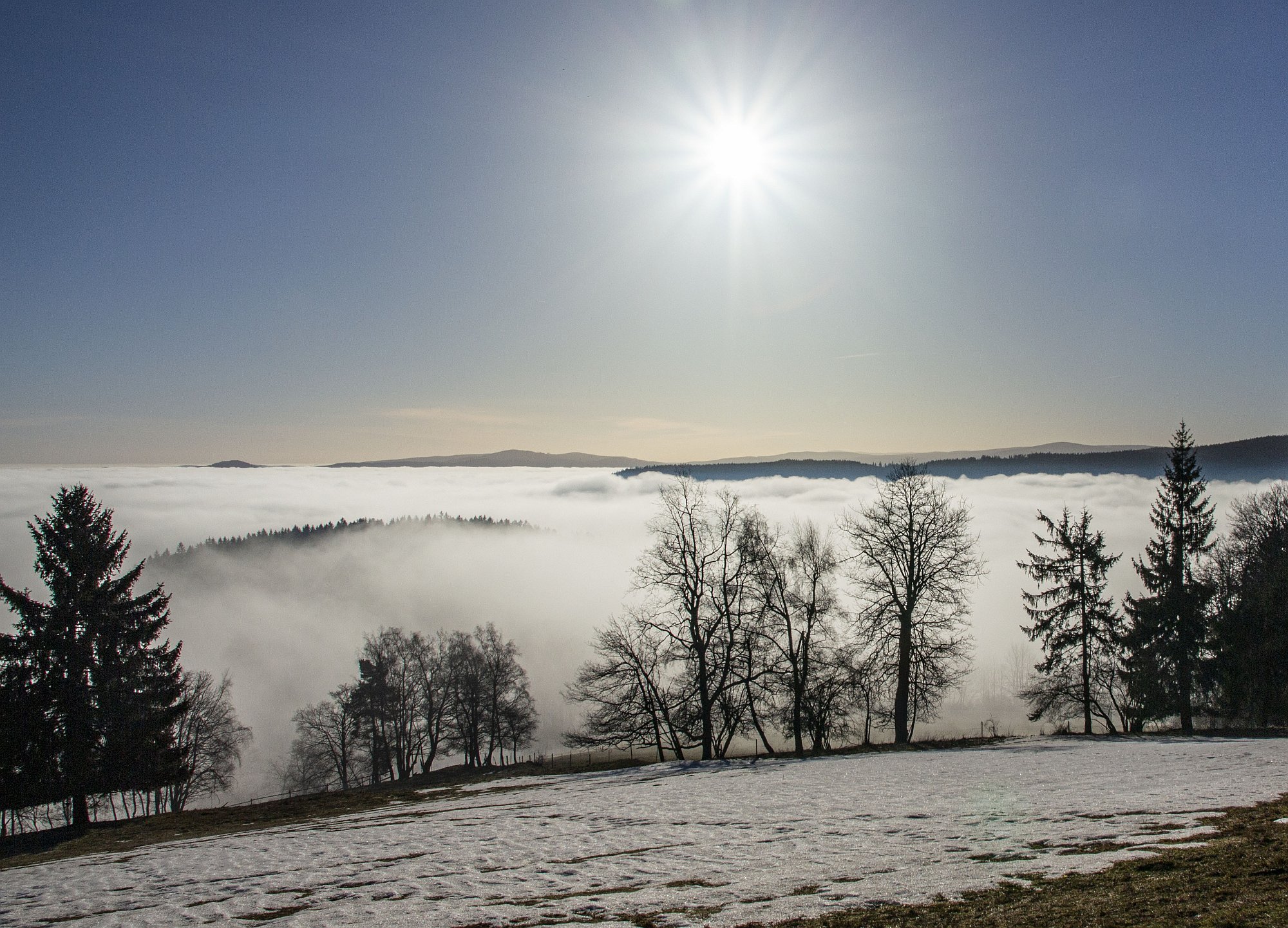 Satelitní snímek Evropy dnes v 16:30 - právě v české kotlině je patrná rozsáhlá nízká oblačnost. Jinde v okolí dnes bylo slunečno
