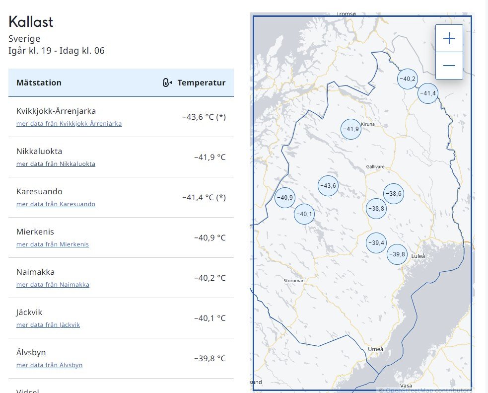 Ve Švédsku naměřili -43,6 °C, nejnižší lednovou teplotu za více než 20 let. V neděli celodenní mrazy dorazí i do Česka