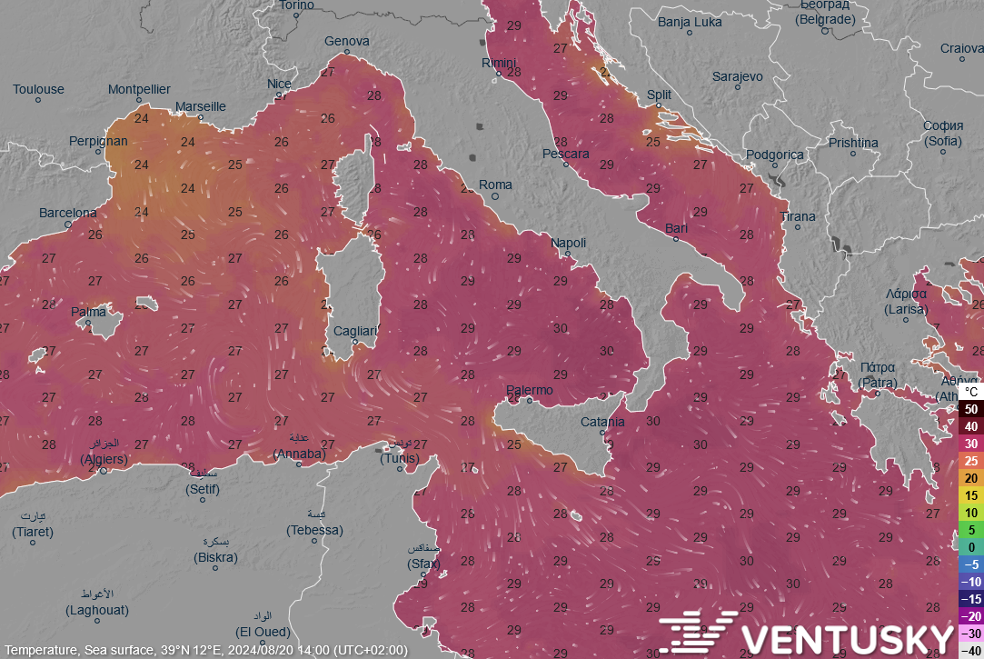 Středozemní moře je rekordně teplé, povrchová teplota na řadě míst dosáhla 30 °C