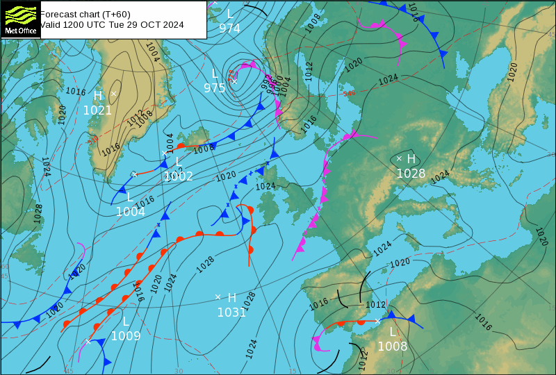 Teplota ve výšce 1500 m nad zemí (850 hPa) v neděli odpoledne podle modelu ECMWF - model očekává průnik studeného vzduchu i do střední Evropy