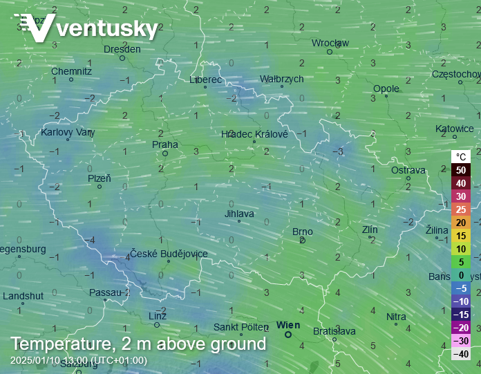 Srážky v úterý kolem poledne (za 3 hodiny) - v Čechách se budou vyskytovat sněhové přeháňky na horách, na Moravě a ve Slezsku bude často pršet
