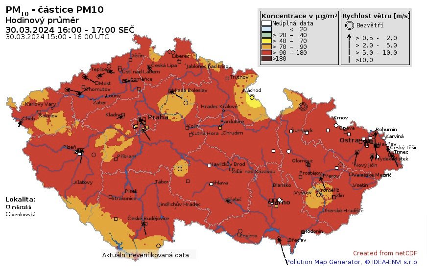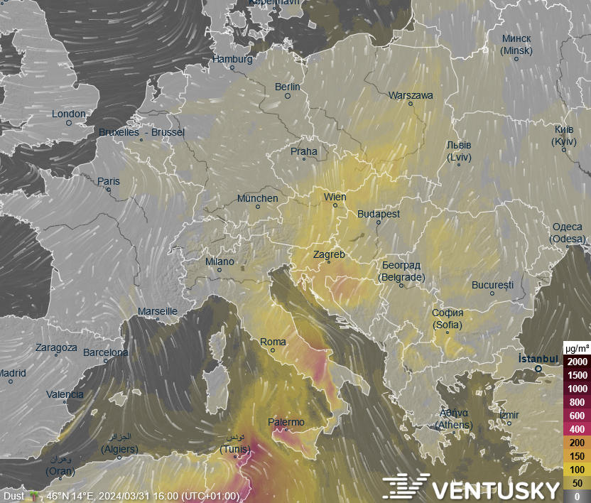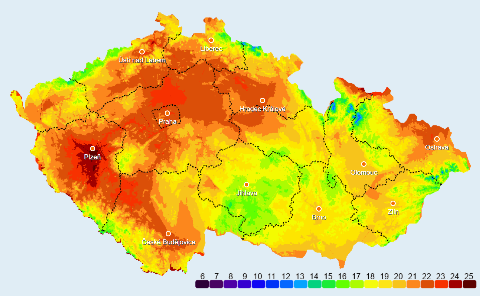 Teplota se dostala téměř na 25 °C, oblohu zakalil saharský prach